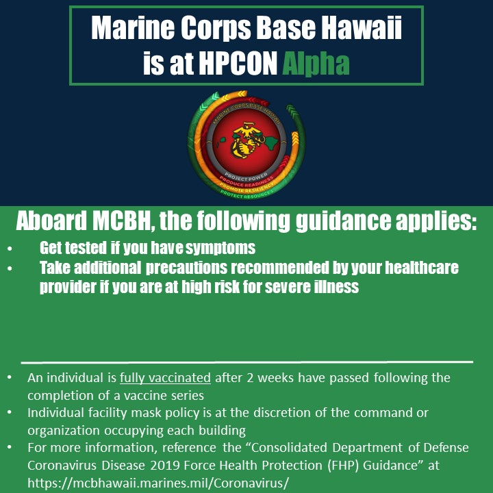 MCBH is in Health Protection Condition (HPCON) level ALPHA